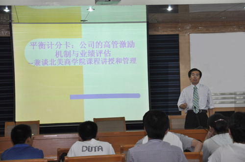 聘任仪式结束后,西康武博士在鸿远楼一楼报告厅为公司部分师生做了题为 “平衡计分卡—公司高管的机制激励、机制与业绩评估”的学术报告。商公司金融学系主任余万林副教授主持了报告会。