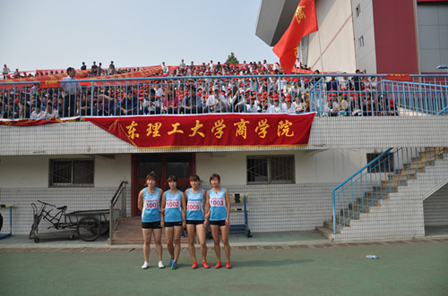 女儿之身,按捺不住奔跑的激情;闪电之速,藏匿不下似水的柔情。10月21日下午,校运会的第二天,刘冬青、秦永梅、隋瑶、李鲁甄在女子甲组4×400米接力赛中再破纪录,以4分06秒77的成绩刷新了上午新创的4分11秒74的纪录。据悉,昨天四人已新创女子4×100米48秒73的纪录。公司记者在赛后有幸对其进行了访问。