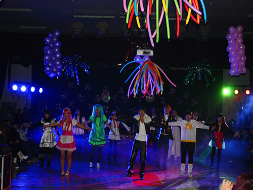 首先,晚会在动感的摇滚演唱和精彩绝伦的Cosplay炫舞中拉开帷幕。可爱活泼的卡通人物走秀,轻盈如燕的民族舞蹈演绎,动感时尚的现代舞表演活跃了现场气氛,精彩的舞蹈赢得观众阵阵掌声。随后,各种热舞表演,典雅的晚礼服走秀再次引起与会观众共鸣。其中,员工会文艺中心男生集体编排的舞蹈将现场气氛引向高潮,夸张的肢体表演,搞笑的表情语言,整齐的舞蹈动作,极具创新的舞出了青春的张扬与活力。互动环节中,主持人与抽奖嘉宾的每一次喊号都引起观众阵阵尖叫。最后,在动感激扬的音乐节奏下,与会观众齐聚中央舞池,尽情领略圣诞狂欢的魅力。