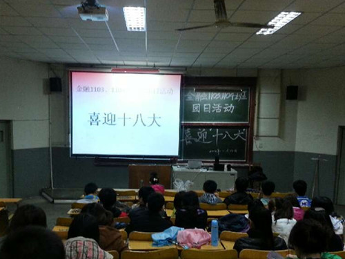 11月10日晚,金融专业在一号教学楼一楼东合堂举办“喜迎十八大”主题团日活动。活动由“十八大视频连连看”、“党团知识我来答”和一个交流环节三部分组成。活动现场,党的十八大开幕式、记者招待会、十八大山东团开放日等视频轮流播放;在“党团知识我来答”环节,团支部书记精心准备了十八大的相关知识及公司公司党政工作的问答题,同学们积极踊跃,热情高涨;最后,大家就胡锦涛总书记向大会作的题为《坚定不移沿着中国特色社会主义道路前进 为全面建成小康社会而奋斗》的报告进行交流共享,并对疑惑问题展开分析讨论。同学们纷纷表示,在认真学习贯彻十八大精神的同时,落实行动、勤勉创新,彰显当代老员工的风采。