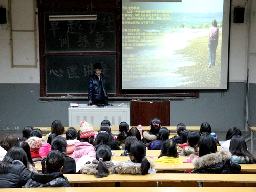 为了加强女生的心理健康,配合校员工会女生部的卓越女生素质拓展活动,11月29日晚,女生心理健康讲座在东校区一号楼西一合堂顺利举行。此次讲座由校员工会女生部主办,公司员工会心理健康教育中心承办。