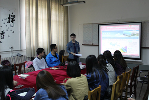 黄建乔则主要负责了摄影知识的传授,他首先介绍了相机各个符号代表意思,并提醒应注意的调整事项,然后通过列举优秀的摄影作品提到了拍摄的技巧:照片拍摄时不能拍歪、逆光,要有一定的耐心,注意“提前量”的把握。与此同时,他也提出几点稿件审核对照片的要求:采用整体性强的图片,照全重要人物,图片尽量不要出现与所报道主题无关的事物,图片要求真实客观,可适度调整图片亮度、做小范围的修复。最后,推荐了蜂鸟网、色影无忌、摄影之友这一类相关网址。