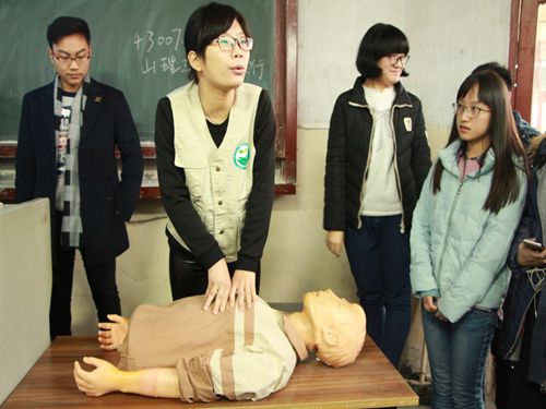 随后,绿巨人志愿服务团队成员向大家讲解了有关急救方面的知识。拨打120急救电话最重要的是说清病人的详细地址及病人的主要病情,使救护人员做好相应的急救准备。对于突发事件,还要注意说明受伤人数。团队成员积极和同学互动,以“如果你身边有一位老人突然昏倒,你该如何拨打120”为例,模拟急救场景,对同学们拨打120急救电话做出指导。最后,团队成员向在场同学演示了心肺复苏及人工呼吸的正确方法。