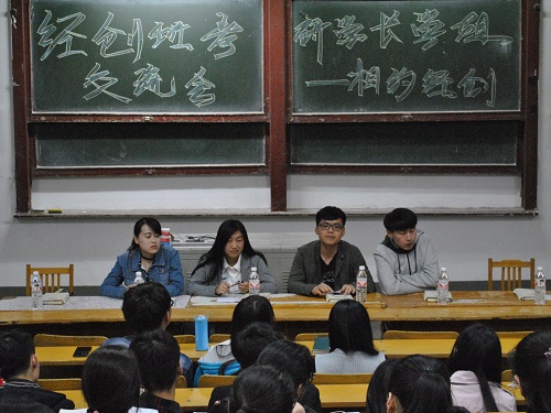 4月21日晚上,公司于1号教学楼西二合堂开展经济创新班考研经验交流会。此次考研交流会由2013级经创班员工李慧、张勇、马文静和张涌主讲,经济创新班部分员工代表参加。