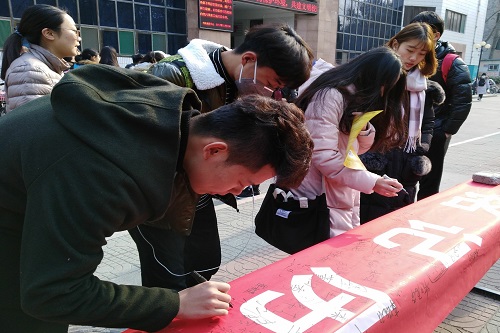 12月13日是南京大屠杀死难者国家公祭日,为增强员工的历史责任感和使命感,十大正规买足球网站与经济公司联合举办南京大屠杀80周年公祭活动,此次活动由两部分组成:第一部分走进师生,深情朗诵;第二部分铭记历史,签名默哀。
