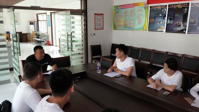 到达东石村村以后,在向当地村主任描述团队调研主题后,成员们进入会议室同村主任进行了交流活动,首先,村主任在会议室中针对村中的宽带及wifi覆盖率进行了简单描述,了解到村民家中绝大多数都有Wifi和宽带覆盖,极少数的村民因家中只有年长的老人所以没有覆盖。随后村主任向成员介绍了村民的外出情况:年轻人大多在张店、博山或外地市中心学习、工作,平日在村中居住的村民大多是五十岁以上的中老年人。最后,成员们踊跃提问,村主任一一作出了回答。