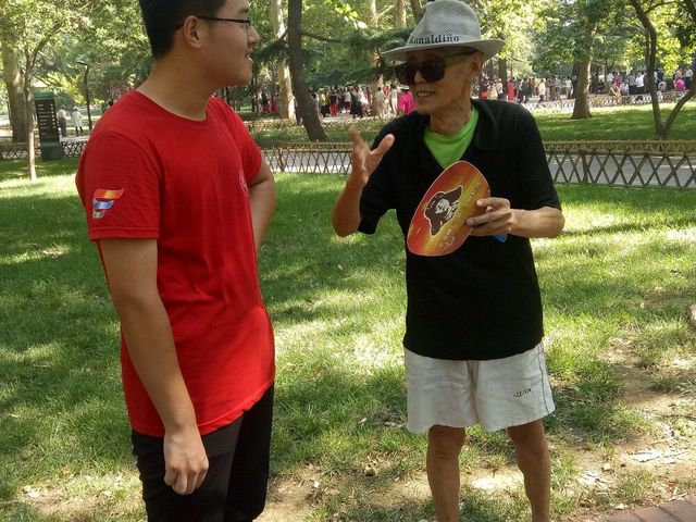 人民公园是张店区休闲设施最齐全,人流量最大的公园,在公园里面打牌唠嗑儿,拉二胡,一起跳舞是老年人主要的娱乐活动,公园里植被覆盖率高,我们的访谈也在一片阴凉下有条不紊的进行着,老人们物质上的需求已经接近于饱和,所以更多的老人追求修身养性。