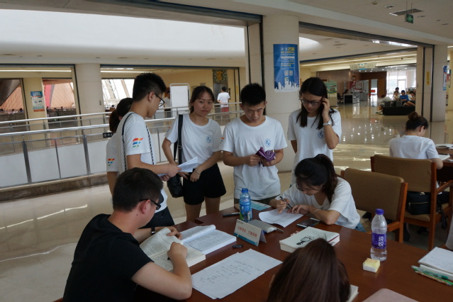 下午,团队成员随机发放了50份提前准备好的“关于网约车使用情况调查问卷”并成功收回42份,来搜集调查对象对于“网约车”问题看法的相关数据。图书馆内大多数人都在读书、学习,在填写完问卷后被调查者会报以团队成员礼貌的微笑。