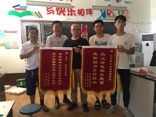 上午,枣杭村“第一书记”徐剑来到枣杭小学看望支教团,并分别赠予公司十大正规买足球网站与“稷下·枣杭”支教团队一面锦旗,前者的锦旗内容是“热心关注农村教育,真情助力乡村振兴”,后者的锦旗内容是“厚德博学成长之途你伴随我,笃行至善振兴路上稷下之风”。他强调,近期天气炎热,支教团成员要注意防暑防晒,注意饮食安全,身体是革命的本钱,要以最昂扬的精神风貌面对接下来的支教活动。
