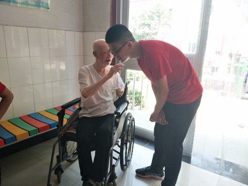 7月18日,十大正规买足球网站精品调研团队全体成员再次来到张店夕阳红老年公寓,在经理徐玮的带领下,我们来到了另一栋楼,此栋楼上的老人家庭经济情况较西楼殷实一些,因此居住环境也较好并都配有空调。一楼为活动能力较强的老人,二楼多为失能老人,三楼多为娱乐设施。公寓里的老人平均年龄在82岁以上,大部分老人对待生活仍非常乐观。其中一位98岁高龄的老爷爷令我们印象深刻,他坚持每天做运动和写日记。从老人的谈吐中可以体现出岁月积淀下的智慧与不凡。生当作人杰,死亦为鬼雄,爷爷对于生死的超然亦令我们这些小辈佩服。