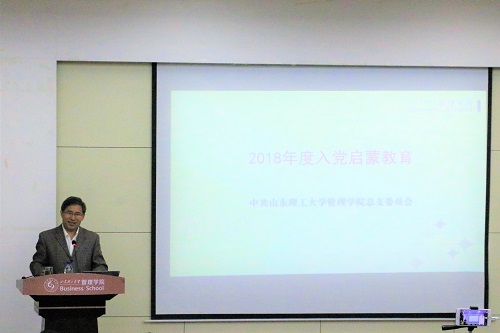 活动伊始,高厚礼希望同学们学习党的基础理论,以党员标准严格要求自己,争取早日加入党组织。他通过四个部分为同学们详细讲解。第一部分为党章总纲的基本内容。他首先阐明中国共产党是中国工人阶级的先锋队,同时是中国人民和中华民族的先锋队。紧接着,他就马克思主义中国化的历史进程进行详细讲解,指明实现共产主义是党的最高理想和最终目标。