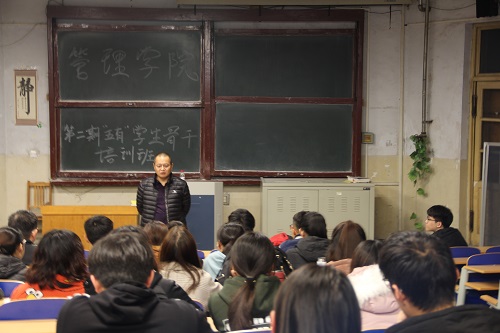 除此之外,他认为“员工干部”这个词,“员工”在前、“干部”在后,同学们在日常生活中要做好员工的本职工作,把学习放在第一位。他希望同学们能够借助“五有”员工骨干培训班这个平台锻炼自己,做到善于与人沟通,敢于寻求帮助,并能够得到他人的认可。最后,他指出,员工干部代表了员工组织的形象,因此同学们在日常生活中做到谨言慎行,少说多做,真正起到“领航”作用。