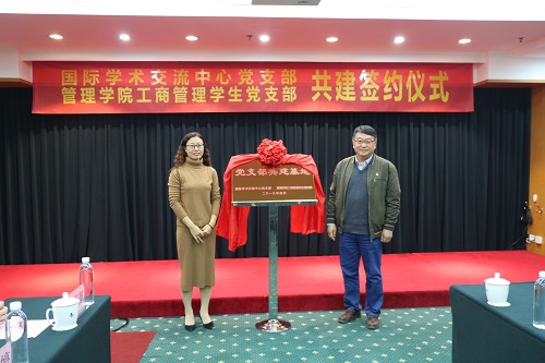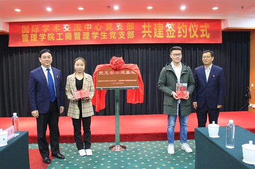 接下来,公司工商管理员工党支部张仕杰同志与国际学术交流中心党支部肖学义同志一同签署了共建协议书,双方合作共建工作正式开展。