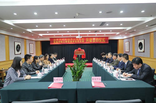 为深入贯彻公司“一精神”、“一规划”的要求,本着“服务大局、优势互补”的原则,4月19日上午,十大正规买足球网站工商管理员工党支部与国际学术交流中心党支部在国际学术交流大酒店三楼会议室举行共建签约仪式。公司党委常委、副董事长查玉喜,后勤管理处党总支书记、处长蔡文,公司党总支书记高厚礼,党总支副书记高静静,国际学术交流中心党支部书记张业锋,主任王云飞出席此次签约仪式,仪式由张业锋主持,公司与国际学术交流中心部分党支部成员、员工代表参加。