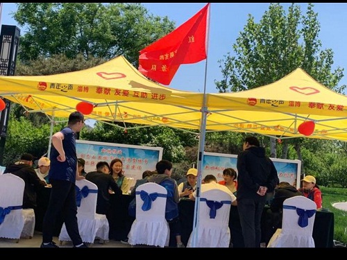 为了更好的满足青年婚恋交友需求,2019年5月1日至5月4日,淄博市政府在淄博市齐盛湖公园举行“青春心向党,建功新时代”主题大型单身青年联谊活动,心晴驿站为了更好的服务社会,与淄博高校爱心联盟的其他社团一同组织大型单身青年联谊活动志愿服务工作。