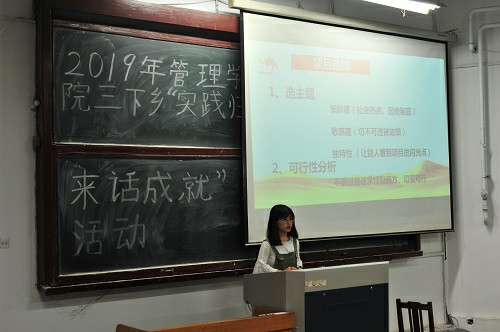 随后,刘尧上台讲述实践经历。她认为,实践中最重要的一环是做好宣传工作,不仅要联系当地媒体进行投稿宣传,也要积极向国家级、省级媒体进行投稿。她讲到,做好宣传工作可以扩大团队影响力,帮助实践团更好的进实践活动,也有利于后期的评奖评优。最后,马凌菲上台讲述实践过程。她指出,社会实践一定要在前期明确分工,分出负责不同工作的小组,保证实践过程有序进行。她还讲到,一定要认真对待社会实践,不要随便拍拍照片、写写报告敷衍了事。
