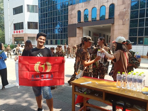 正值军训期,麦穗守望者协会于餐厅门口提供临时送水站,发水前,麦穗守望者协会的各个成员将爱心标语贴在矿泉水瓶上,整齐的摆放在桌子上,各位成员有条不紊的进行着爱心水的运送工作,为刻苦训练的军训新生送去纯净水。“我是九,你是三,除了你还是你”,“我不要你觉得,我要我觉得”,“我想问一条路,一条到你心里的路”……瓶身标签的文字引人入胜,一条条有趣的句子消除了他们军训时的疲惫感,带给了他们片刻的轻松。看到学弟学妹们军训后喝水的畅快,一句简单的“谢谢”都让负责派水的学姐学长们无比欣慰,这不仅是因为成员们的奉献,更因为他们能尽自己的力量给新入学的学弟学妹送去温暖。