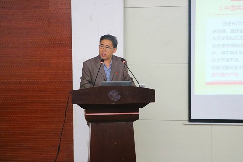 活动伊始,高厚礼希望同学们学习党的基础理论,以党员标准严格要求自己,争取早日加入党组织。随后,他通过三个部分为同学们详细讲解。一是中国共产党是一个什么样的政党。他通过回顾党的历史向同学们讲解了党的建立和发展历程。他讲到,党在不断的自我革命中成为一个执政大党,并向建设中国特色社会主义的目标迈进。希望同学们做到“不忘初心,牢记使命”,坚定不移跟党走。