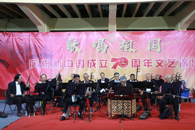 晚会伊始,主持人感叹祖国70年来的发展,70年沧海桑田的巨变,70年春华秋实的收获和70年繁荣昌盛的画卷。接着在对祖国的赞美声中晚会表演正式开始,乐器合奏《花好月圆》将现场的气氛活跃起来,随后朱淑君带来歌曲《为祖国干杯》,唱为祖国唱,美为祖国美,斟满祝福,斟满赞美,放开歌喉,为祖国干杯。