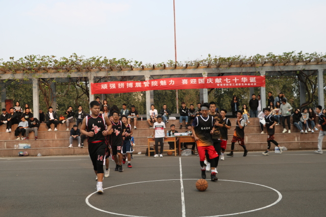 比赛分为上下半场,各20分钟,中场休息时间五分钟。中圈跳球,随着裁判一声哨响,比赛开始紧张有序地进行,两队进攻你来我往,球衣红黑相间,双方攻守交替。比赛伊始,两队互不相让,向对方球筐展开进攻。虽然比赛中出现球员摔倒受伤的情况,但两方士气丝毫不减,双方队员都情绪高涨,观众亦激情四射,比赛双方精彩地抢断,流畅地进攻,引起场边观众阵阵欢呼,掌声经久不息。半场结束,信管本篮球队比分领先。