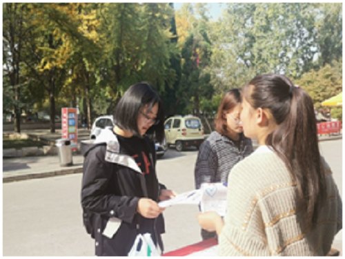 此次活动的宣传采用线上、线下两种形式。在宣传活动之前,管理论坛制作了宣传横幅,宣传单页等,为活动的开展做足准备工作。宣传活动当日,社团成员通过悬挂横幅、派发宣传单页、解答问题等方式,向同学们介绍案例分析大赛的活动时间、地点及参赛方式等相关事项,吸引了众多同学前来围观并参与了解赛事情况。很多同学在社团宣传成员的介绍后,对案例分析大赛有了更深程度上的认识和了解,并通扫描单页上的二维码,加入此次活动QQ群或直接扫描二维码报名参赛。最后,在宣传人员的帮助下,同学们顺利进行到梦空间第二课堂平台的报名。