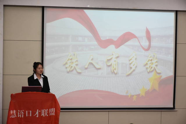 比赛开始前,播放由社团指导老师孙婷录制的“礼赞七十周年”视频,为朗诵比赛营造良好的氛围。紧接着,各位选手依次上台演讲。“两弹”元勋邓稼先,环境卫士杨善洲,“铁人” 王进喜,英雄杜富国等时代楷模的事迹让人们铭记于心。参赛者通过精心准备的PPT和伴奏音乐增强演讲的感染力。每位参赛者演讲结束后由评委进行点评打分。评委对选手演讲中的不足进行指正并且为选手做出示范以便选手更好领会。此次活动在观众的掌声中结束。