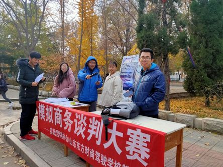 为增加同学们对模拟商务谈判大赛的了解,使同学们积极参与到模拟商务谈判大赛中来,提高同学们对于商业问题的谈判能力,争做五有人才,11月26日上午,实战营销协会组织志愿者于中心花园东侧展开模拟商务谈判大赛宣传活动。