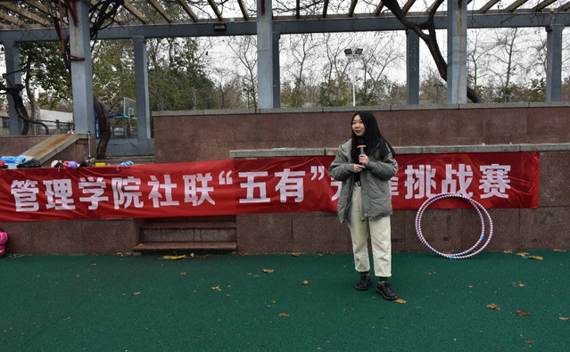此次活动以“挑战五有”为主题分为五个环节,分别体现有社会责任、有创新精神、有专门知识、有实践能力、有健康身心。活动伊始,赵俊讲解此次活动的规则以及每个关卡所在的场地。随后,活动正式开始,五个关卡同时进行,每支队伍随意选择要挑战的关卡。在“生死与共”这一环节,参赛成员需要一起站在报纸上维持平衡,参赛成员为取得成功将另一个参赛成员背在背上来挑战此关卡,同时,还有关卡需要参赛成员在蹦蹦跳跳地摇晃乒乓球,一旁的队友呐喊助威。有“实践能力”这一关卡需要团队协作手拉手用身体传递呼啦圈,锻炼参赛成员之间的默契,每个参赛成员的脸上都洋溢着欢快的笑容。