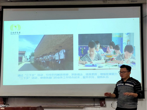 “不经一番寒彻骨,怎得梅花扑鼻香。”刘金梅学姐说,润农科技机械助农平台使她找到了理论与实践的结合点。刘金梅介绍,只有理论没有实际操作,只是纸上谈兵,是不可能立足于这个社会的。对于三农问题的解决方案,靶点是精准扶贫和乡村振兴两个国家战略,不能停留在两个一般层次,而应该是高校资源作为社会经济要素在三农问题上新的富有成效的解决方案。最后,呼吁大家一定要走出校门,接触社会,真正的把理论与实践结合起来。