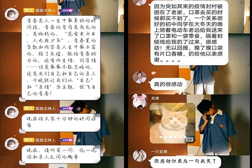 此次活动采取审核制,录取到梦空间报名的前50名志愿者,参与此次活动的志愿者在活动负责人的安排下分别进入两个事先创建好的活动群,进行两天的发言讨论。第一晚活动的主题围绕友情展开,志愿者们纷纷分享自己与好朋友一起发生的趣事,一些志愿者对他人的趣事也进行激烈的讨论,表达自己的感受和赞叹。第二晚活动的主题围绕青春展开,青春是人一生中最美好的时间段,“花有重开日,人无再少年”,志愿者们纷纷对青春里发生的事情展开讨论,还有不少志愿者分享青春的乐趣和青春时期的遗憾。