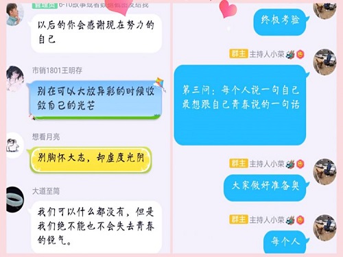 此次活动以线上形式进行,共有50名同学参加。活动期间,同学们在交流群中积极地分享自己在疫情期间发生的有趣故事,或提出自己的疑惑,或对别人的故事进行评价,或对提出的疑问进行回答……多种多样的交流方式使活动气氛十分高涨。志愿者们在发言结束后,向负责人提交故事记录及发言数据的截图,经审核通过,此次活动正式结束。在此次活动中,许多同学都参与故事分享,为他人带来乐趣,也达到在疫情期间的减压目的。同时,丰富多彩的故事分享也使得同学们之间的关系更加和谐。