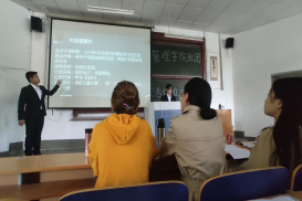 随后,张康豪介绍“红色文化设计大赛”社团活动策划,他讲到,初赛阶段参赛人员自行选取红色旅游景点相关信息,在三天时间内撰写选题内容简述,社团工作部门对调研简述进行打分评比,按20%的淘汰率进行评选。决赛阶段则需要各参赛队伍根据初赛的内容简述撰写详细调研策划,评委依据讲述内容及现场反应进行排名。最后答辩接近尾声,程丽丽进行总结,此次答辩的结束标志着本学期金点子调研室的工作正式开始,接下来该社团将着力举办“研之有理”活动,希望大家依旧充满热情活力,积极参加社团活动。