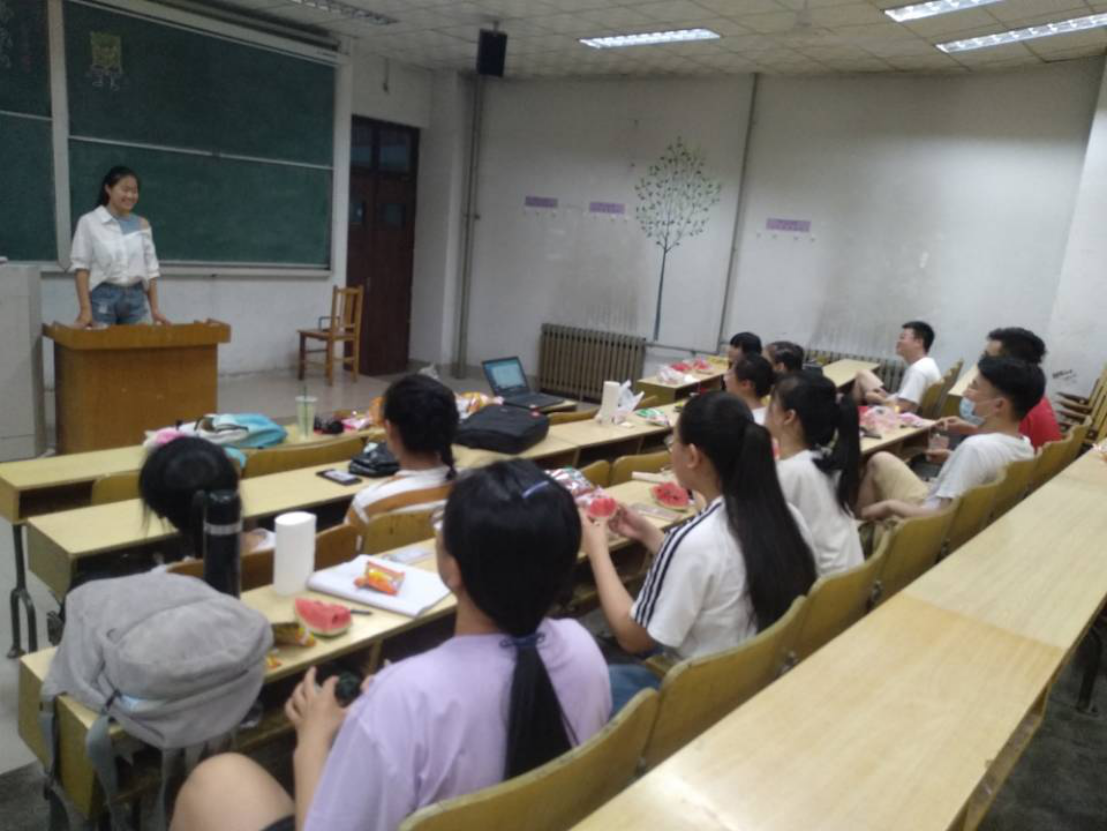 活动开始前,负责人为管理论坛成员准备了水果、饼干等,并选定教室。参加成员到齐之后,白淑娟向社团成员说明比赛规则:本次活动主要包括两个环节:猜字谜、猜歌名。所有游戏环节分男女两队进行比赛。待所有环节结束后,得分高者胜,失败的队伍要接受“唱歌”的惩罚。随后,白淑娟宣布游戏环节开始。第一环节“猜字谜”由白淑娟在讲台上出题,男女两队抢答。管理论坛成员积极参与,展现出新时代老员工的青春与活力。随后,开展“猜歌名”游戏。男女抢答。本环节共有32首歌曲。白淑娟播放音乐,管理论坛成员积极抢答。在抢答成功并说出正确歌名后,还要进行演唱。在三组游戏结束后,计算三组游戏最终得分。女生队以一分落后于男生队,并接受惩罚。此后,管理论坛成员齐唱生日歌,为一名成员庆祝生日。最后,白淑娟宣布会员活动结束。管坛成员将教室打扫干净,并有序离开。