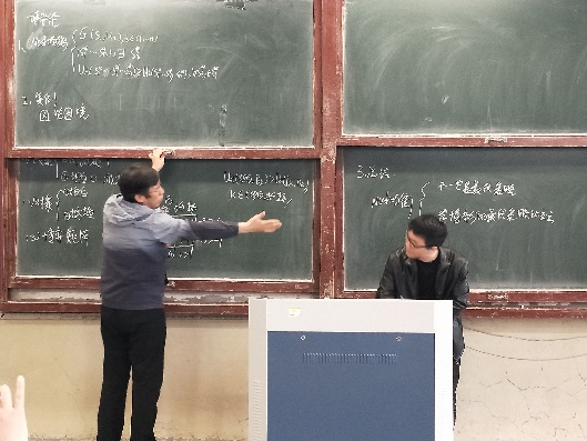 考核过程中,可以看到三名新入职教师都做了精心准备,体现了较好的专业素养和教学水平。考核专家组成员张立涛老师一丝不苟,亲自上台给予演示,告知某些板书内容应该如何布局最为合理,小到指正文字的书写笔画。张立涛从试讲教师的教学态度、教学内容、教学方法、教学效果、基本能力等各方面分别进行了客观公正的评价。