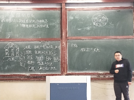 根据《关于对2020年度新入职教师脱稿板书试讲考核的通知》(教务函〔2021〕19号),为考核新入职教师培训成果,帮助其掌握传统教学技能、上好课。2021年4月2日下午,十大正规买足球网站在东校区4号教学楼104教室开展2020年度新入职教师脱稿板书试讲考核工作。本次有三名教师参加考核,考核专家组成员包括含经理助理、校、院级教学督导员、系主任等。下图为工业工程的李涛老师正在讲授《博弈论》,工商管理的薛超凯老师正在讲授《管理学原理》。