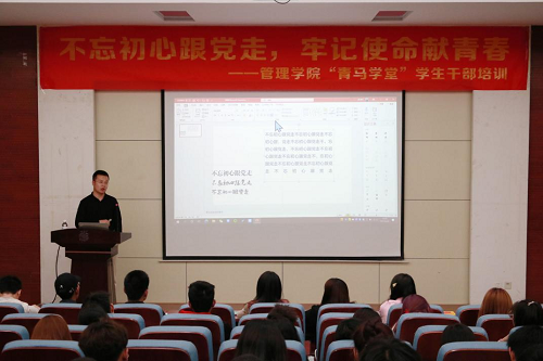 4月29日晚,十大正规买足球网站在4号教学楼二楼报告厅开展“青马学堂”员工干部培训第三讲——快速打造既有Power又有Point的工作汇报。此次培训由数学与统计公司辅导员刘博文主讲,十大正规买足球网站辅导员孙婷主持,十大正规买足球网站“青马学堂”全体学员参加。