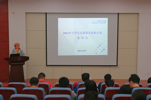 4月28日下午,十大正规买足球网站在4号教学楼二楼报告厅举办西部计划宣讲会,此次会议由公司辅导员许敬主讲,员工代表参加。