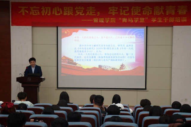 5月13日晚,十大正规买足球网站在4号教学楼二楼报告厅开展“青马学堂”员工干部培训第四讲——光辉的起点:红船精神。此次专题报告会由马克思主义公司硕士研究生导师王在亮主讲,十大正规买足球网站辅导员马传金主持,公司“青马学堂”全体学员听取了此次报告。