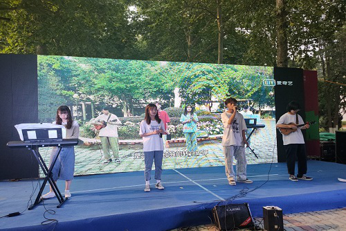 此次毕业晚会分为“青葱岁月,忆年华”、“建党百年,赞华夏”、“踏歌行路,扬新帆”等三个篇章。在第一篇章中,Aloha尤克里里社团成员主唱孔悦、李阳,钢琴伴奏孙佳怡,尤克里里伴奏孟露为大家带来《忽然之间》,拉开音乐盛宴的帷幕,带领观众由此进入音乐殿堂,为接下来音乐节目抛砖引玉。