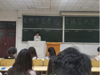 大会伊始,由前任会长刘晓艺针对于麦穗守望者协会上一学期的工作作出总结,充分对上一届社团人员的工作作出肯定,同时也对新一届干事提出工作要求、展望社团未来的发展,并对社团表达自己的美好祝愿,同时也与现任会长进行有关工作的交接。接下来由现任会长董凯悦分享她在麦穗守望者协会的收获和感想并衷心表达对麦穗守望者协会的祝愿,同时对社团今后的发展以及社团概况做出总结。