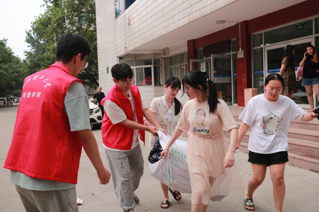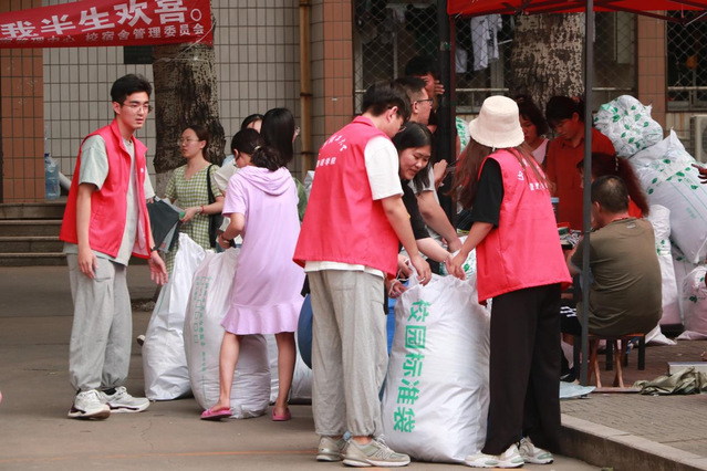 志愿者们根据对接安排,进入毕业生宿舍,数次往返于毕业生宿舍和公司大门之间,帮助毕业生清理、搬运行李。炎热的天气让志愿者们渐显疲态,但天气却无法阻挡他们前进的脚步,志愿者们不辞辛苦,勤勤恳恳。毕业生们纷纷向志愿者们表示感谢:“感谢志愿者们一天的辛苦付出,拿起行李走的那一刻,母校的点滴犹在眼前,感恩母校给予的培养教育,祝愿母校桃李满天、人才辈出。”
