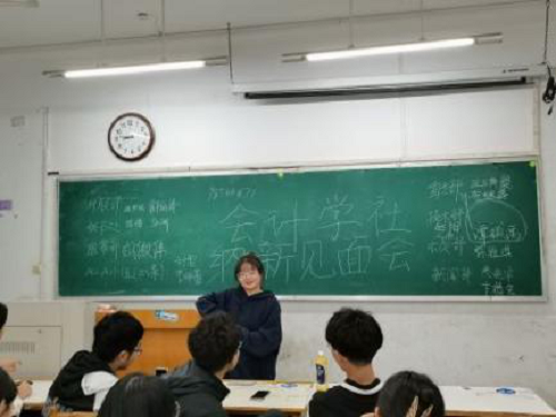 见面会伊始,会长蒋玉金向新成员介绍关于会计学社的历史、活动举办、部门分类等的信息,并耐心解答新成员的疑惑,让新成员对会计学社有初步了解。随后,由副会长轮流向新成员介绍其负责部门的详细信息,同时表示对新成员的欢迎,帮助新成员对之后的部门选择有大致方向。