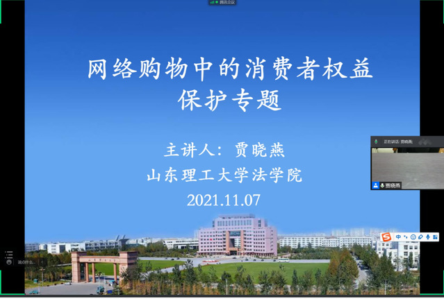 11月7日晚,十大正规买足球网站办公室权益工作以线上形式进行“网络购物中的消费者权益保护”专题讲座,十大正规买足球网站法公司副教授贾晓燕老师主讲。此次讲座共分为网络购物中常见的问题、消费者的权利、消费者维权途径三个方面。贾晓燕通过为员工详细介绍《消费者维权保护法》的部分条目及《食品安全法》,保证员工在“双十一”购物狂欢节中免受不良商家的欺骗。随后,贾晓燕向员工着重介绍网络购物中常见的问题,并为员工提供相关维权途径。最后,贾晓燕希望员工树立正确价值观,提高安全防范意识,学会用法律武器保护自己的合法权益。巩固活动初赛成果,同时加深同学们对网络购物及消费者维权的理解