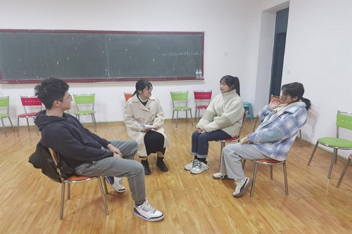 首先,蒋志丽先让同学们分享大家在进入大学之后都有哪些压力。随后,通过“压力病毒”游戏让同学们认识压力、了解压力。在这个游戏中,同学们其中一人被指定为“压力源”,即压力的传播者。然后这位同学在与其他同学的交流中将压力传染给其他同学。第二轮游戏中,蒋志丽告诉同学们她已经找到治疗压力的有效措施——“快乐源”,又假装指定“快乐源”,之后又让同学们交流,在交流中传递快乐。