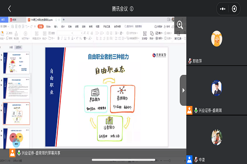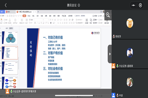 活动伊始,就业服务工作人员邢依萍在活动群里说明活动规则及注意事项。她讲到,此次宣讲会将在线上腾讯会议召开,有就业服务工作请到的知名公司专业人力资源管理师为大家讲解就业求职的相关事项。在腾讯会议开始后,参会员工认真听讲,积极与演讲人互动,形成了良好的会议氛围。宣讲会结束后,工作人员致辞感谢演讲者的精彩发言并对宣讲会整体做出总结,宣布宣讲会圆满结束。