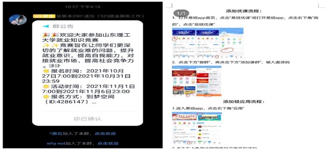 活动伊始,就业服务工作工作人员孟仪在活动群里说明活动规则及注意事项。他讲到,此次竞赛采取易班线上答题的形式,竞赛共一百道题目,满分为一百分。题型有单项选择题和多项选择题两种题型,单项选择题共六十题,每题一分,多项选择题共二十题每题两分,且活动不设题库。活动过程中,参赛员工积极查询背诵相关知识,就业服务工作的工作人员也积极给有疑问的参赛员工答复,保证了活动的顺利进行。答题时间结束后,工作人员统计成绩并向参赛员工公布。至此,竞赛圆满结束。