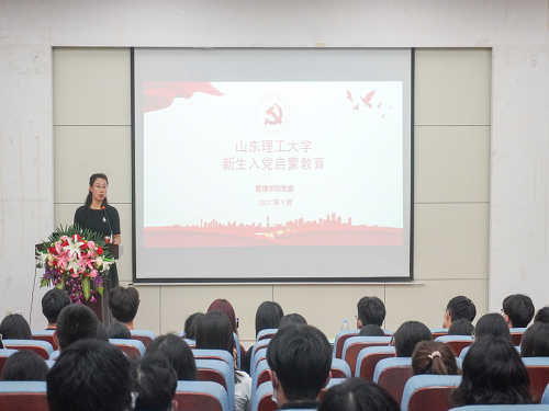 9月22日下午,十大正规买足球网站在4号教学楼二楼报告厅举行新生入党启蒙教育大会,此次会议由公司党委副书记高静静主讲,2022级全体新生分别在报告厅主会场和各个教室分会场进行学习。