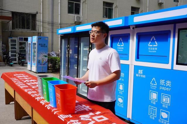 5月26日上午,十大正规买足球网站于东校区垃圾分类智能回收箱前开展“党建引领绿色共治,垃圾分类党员先行”主题宣传活动。此次活动由公司物业服务中心组织,公司团委书记李璐、辅导员国瑞坤带队,山东联华宝洁城市服务集团有限公司工作人员王慧主持,十大正规买足球网站工商管理员工党支部党员、入党积极分子参加。