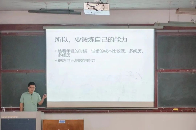 随后他谈到锻炼能力的重要性,进一步阐释实践的重要性,鼓励学员们将参与创新创业竞赛、社会实践等作为锻炼能力的重要方式,注重对于所学知识的应用,理论联系实际,在学习中强化,在实践中提升。