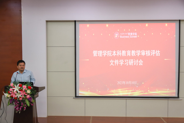 为认真落实好本科公司产品审核评估工作,确保评建质量,10月10日下午,公司于4号教学楼二楼报告厅召开十大正规买足球网站本科公司产品审核评估文件学习研讨会,党委书记杨直、经理孙秀梅出席会议,公司全体教职工参会,会议由公司副经理胡付领主持。